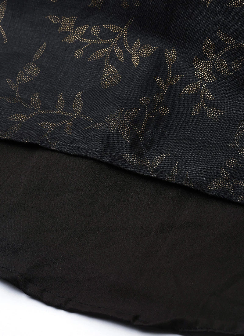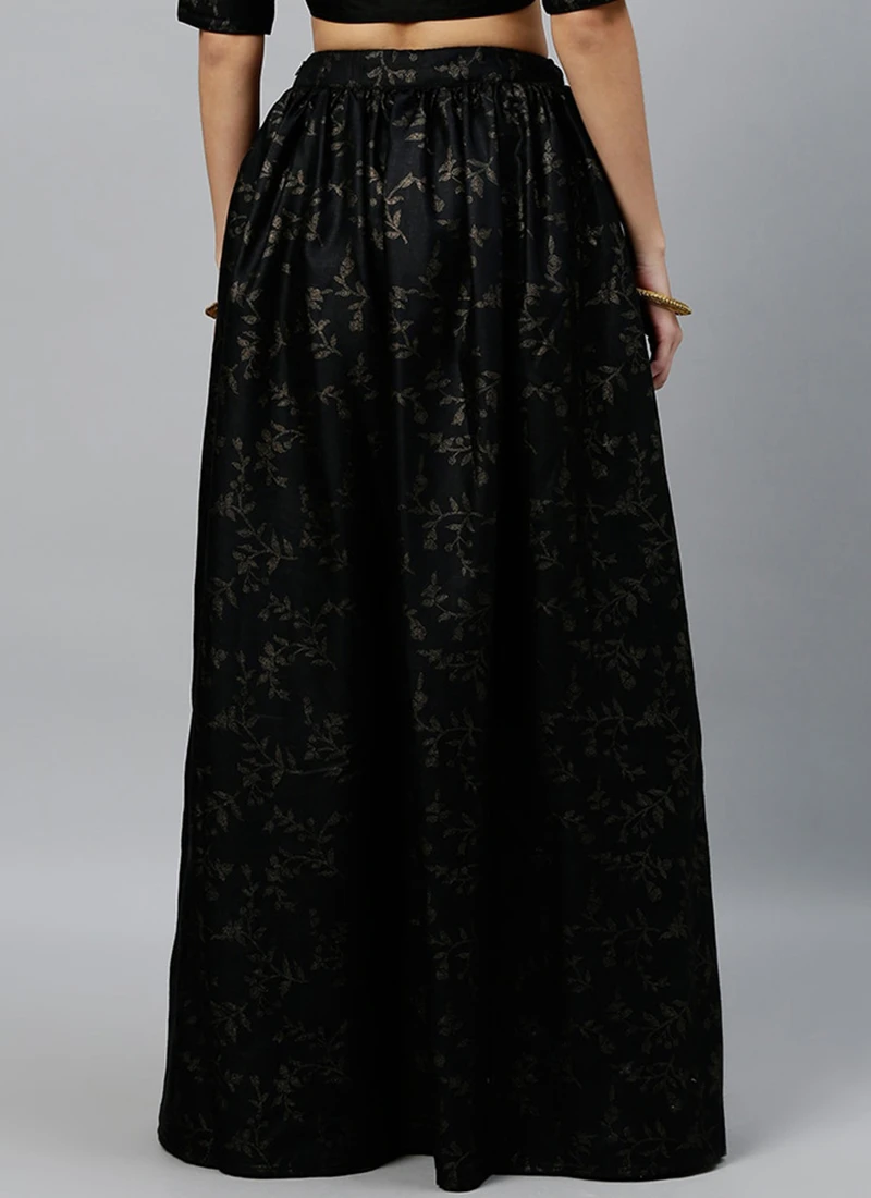 Black Foil Printed Rayon Skirt Festive Wear