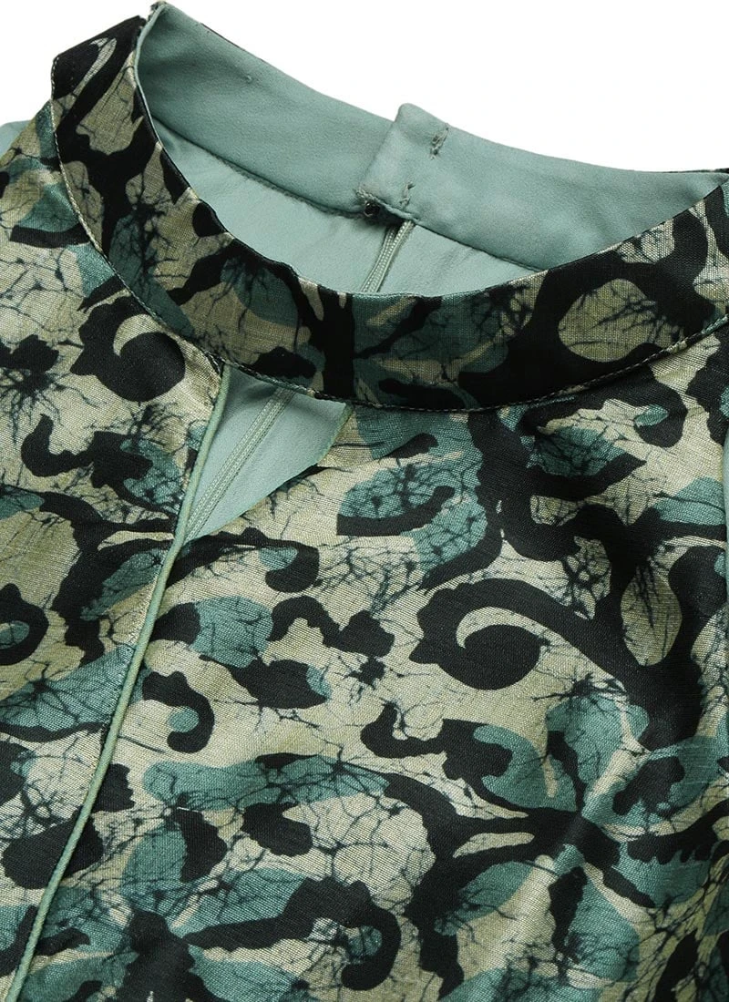 Blue Art Silk Digital Printed Halter Neck Dress Festive Wear