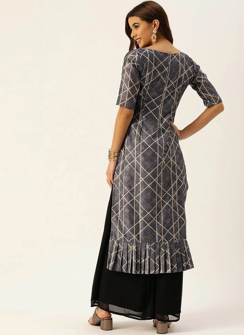 Blue Digital Print N Caviar Black Kurta Sets After Six Wear