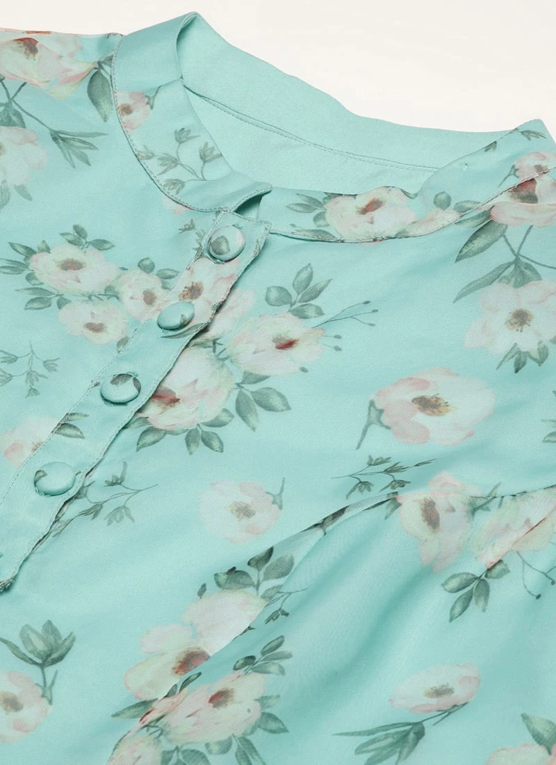 Blue Digital Printed Kurta Set With Straight Pant Festive Wear
