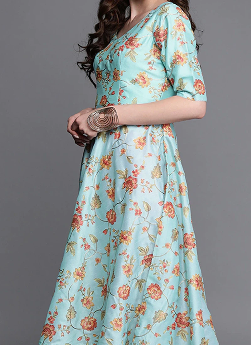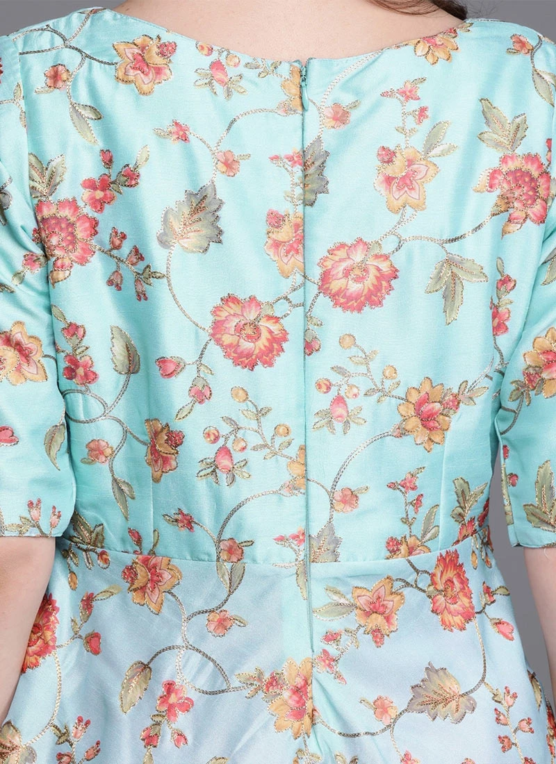 Blue Embroidered N Peach Kurta N Wide Leg Pant Festive Wear