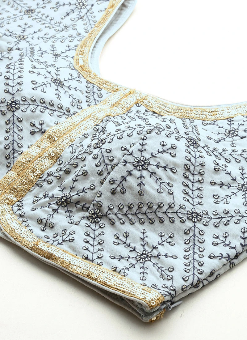 Blue N Grey Sequence Embroidered Blouse Festive Wear