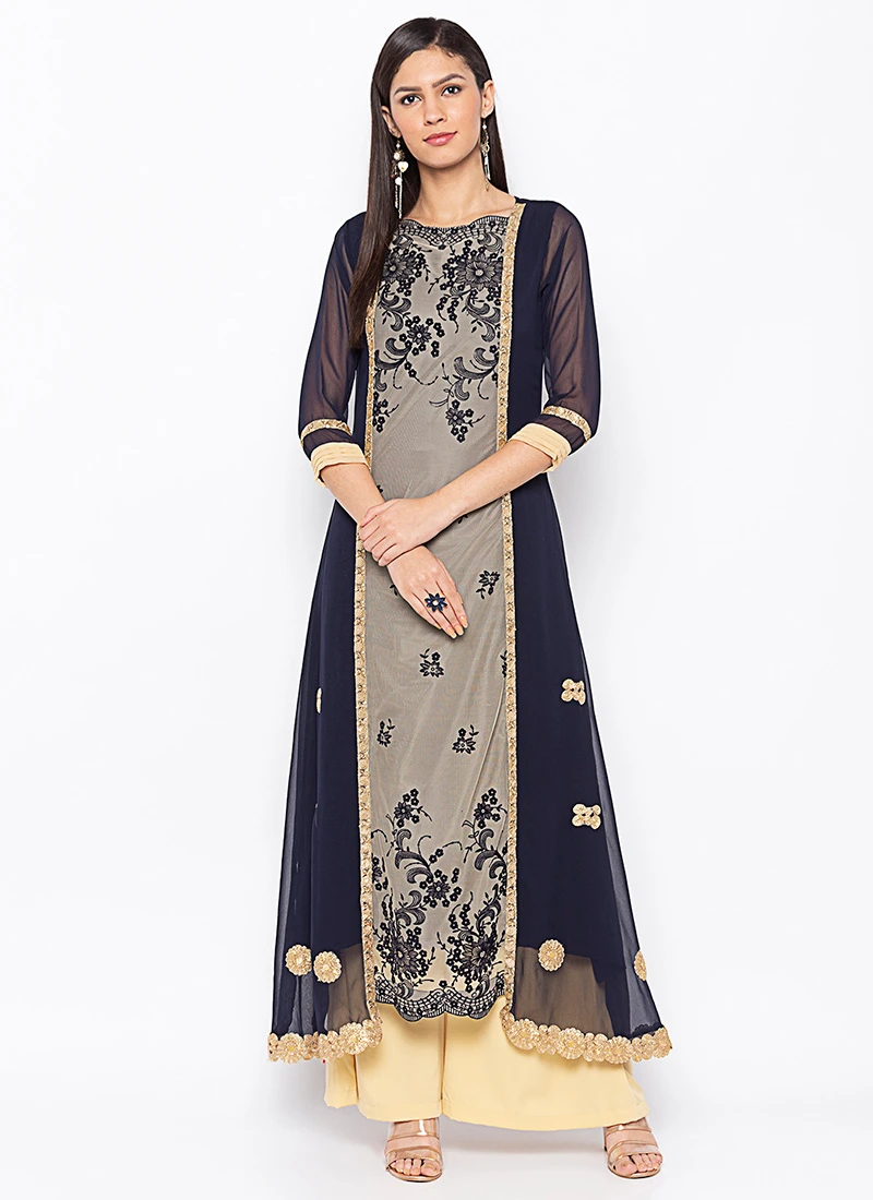 Dark Pink Georgette Embroidered Kurta Churidar Set After Six Wear