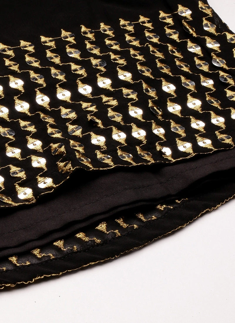 Bottom From Black Embroidered Georgette Gharara Set After Six Wear