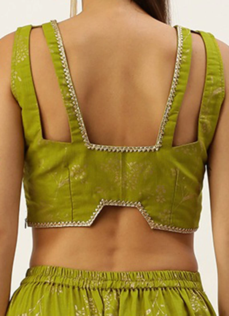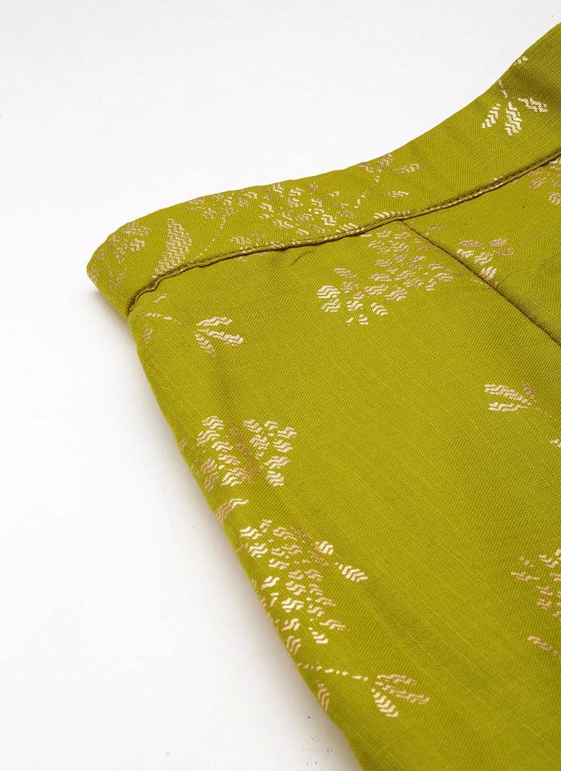 Bottom From Olive Green Rayon Foil Printed Co Ord Set After Six Wear