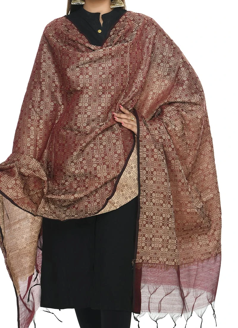 Checked Black Handloom Cotton Weaving Work Dupatta Work Wear