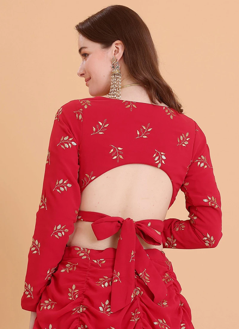 Dark Red Embroidered Georgette Blouse Festive Wear