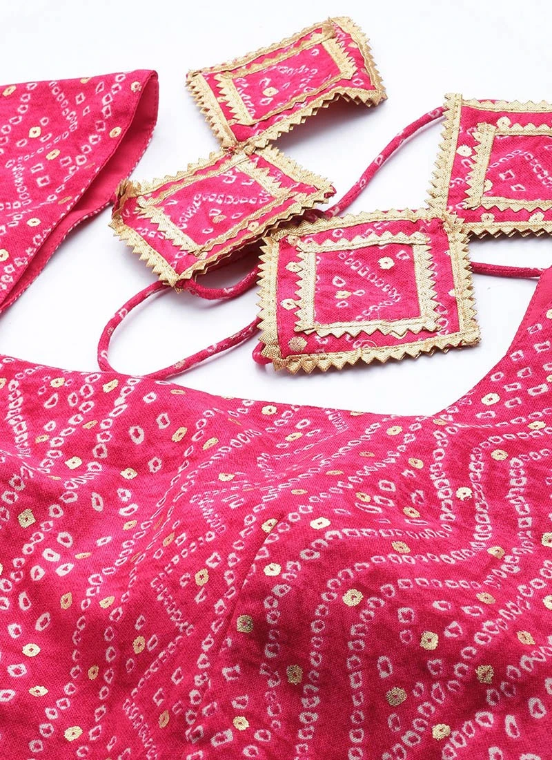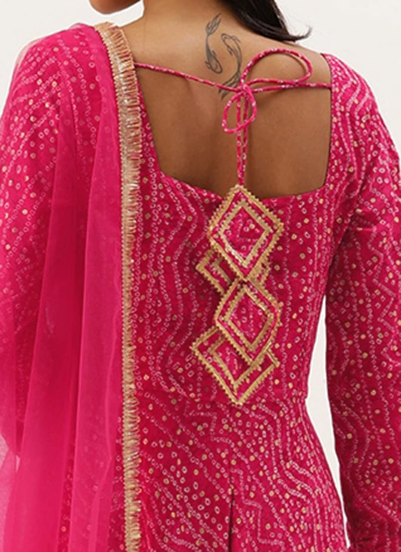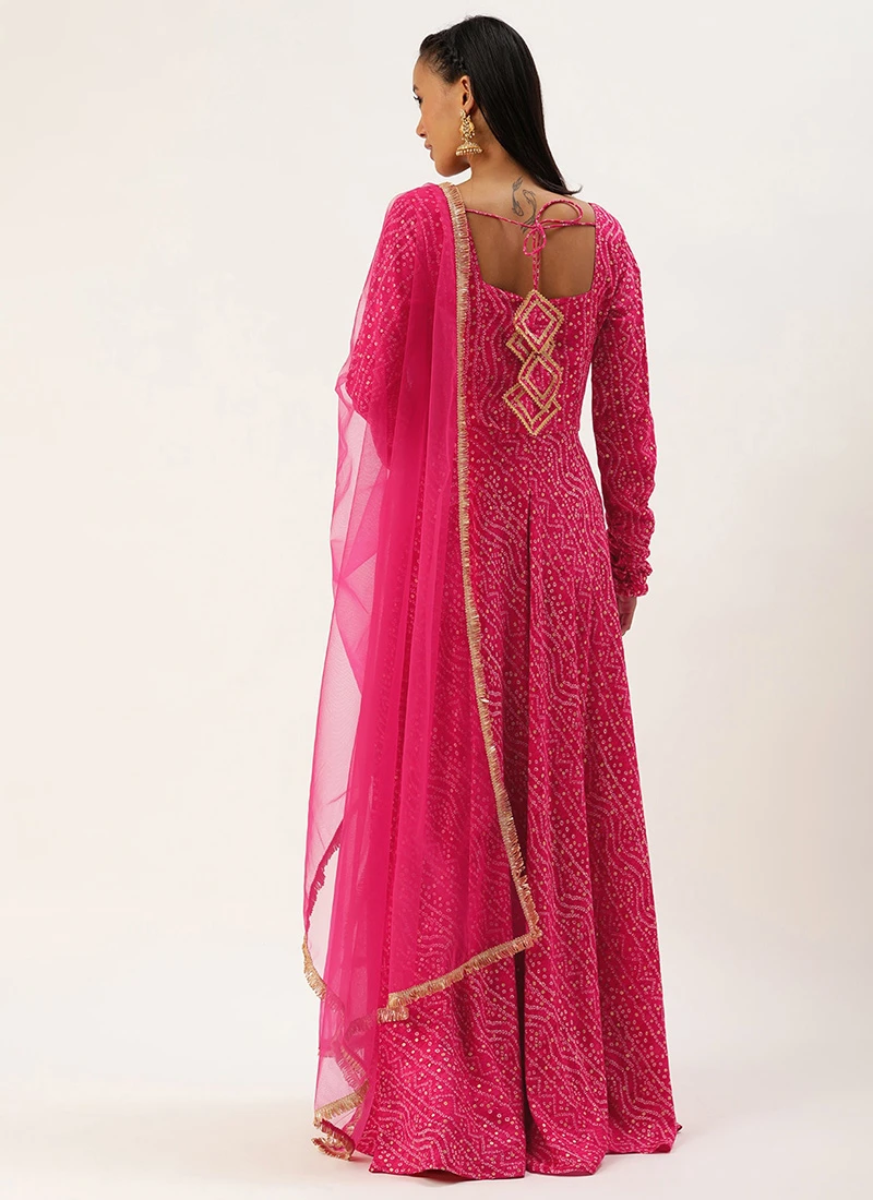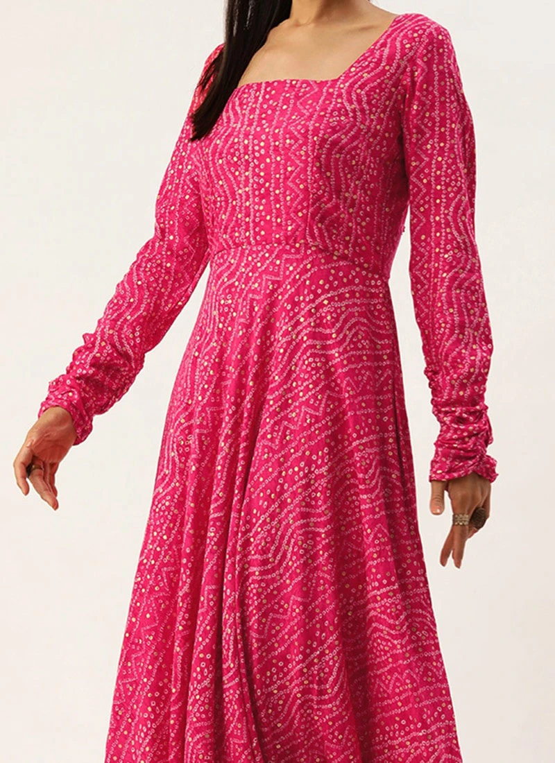 Dupatta From Pink Bandhani Printed Rayon Gown With Dupatta Set After Six Wear