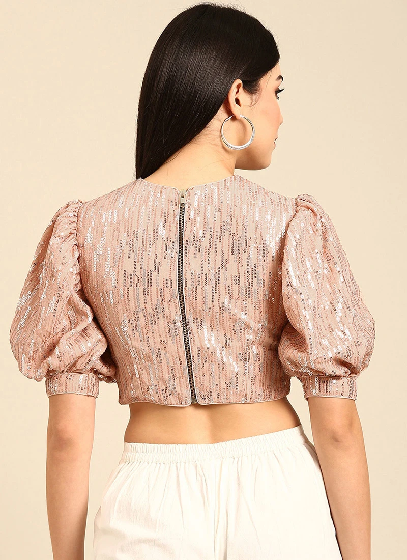 Dusty Peach Embroidered Georgette Blouse Festive Wear