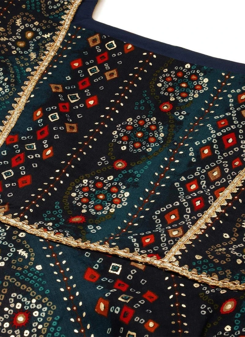 Fit N Flare Dark Blue Printed Dress Festive Wear After Six Wear