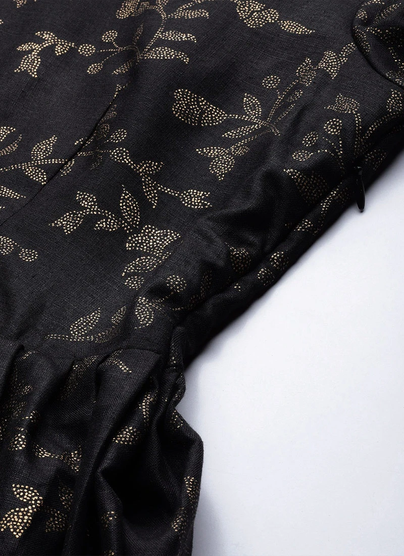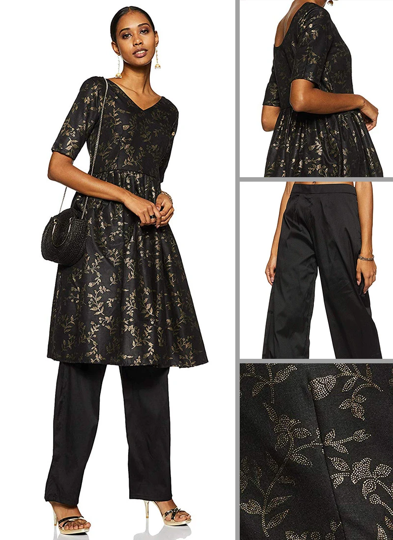 Foil Printed Black Rayon Kurta Wide Leg Pant Set After Six Wear