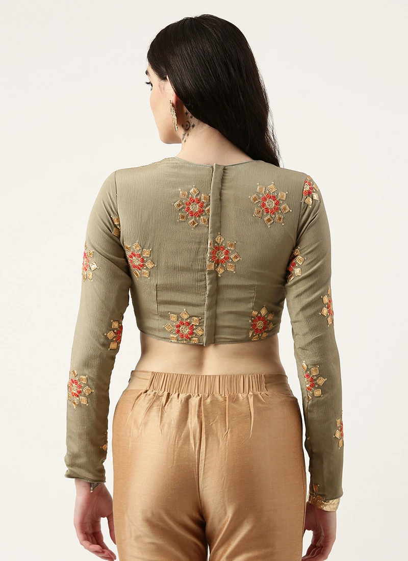 Grey Embroidered Blouse Festive Wear