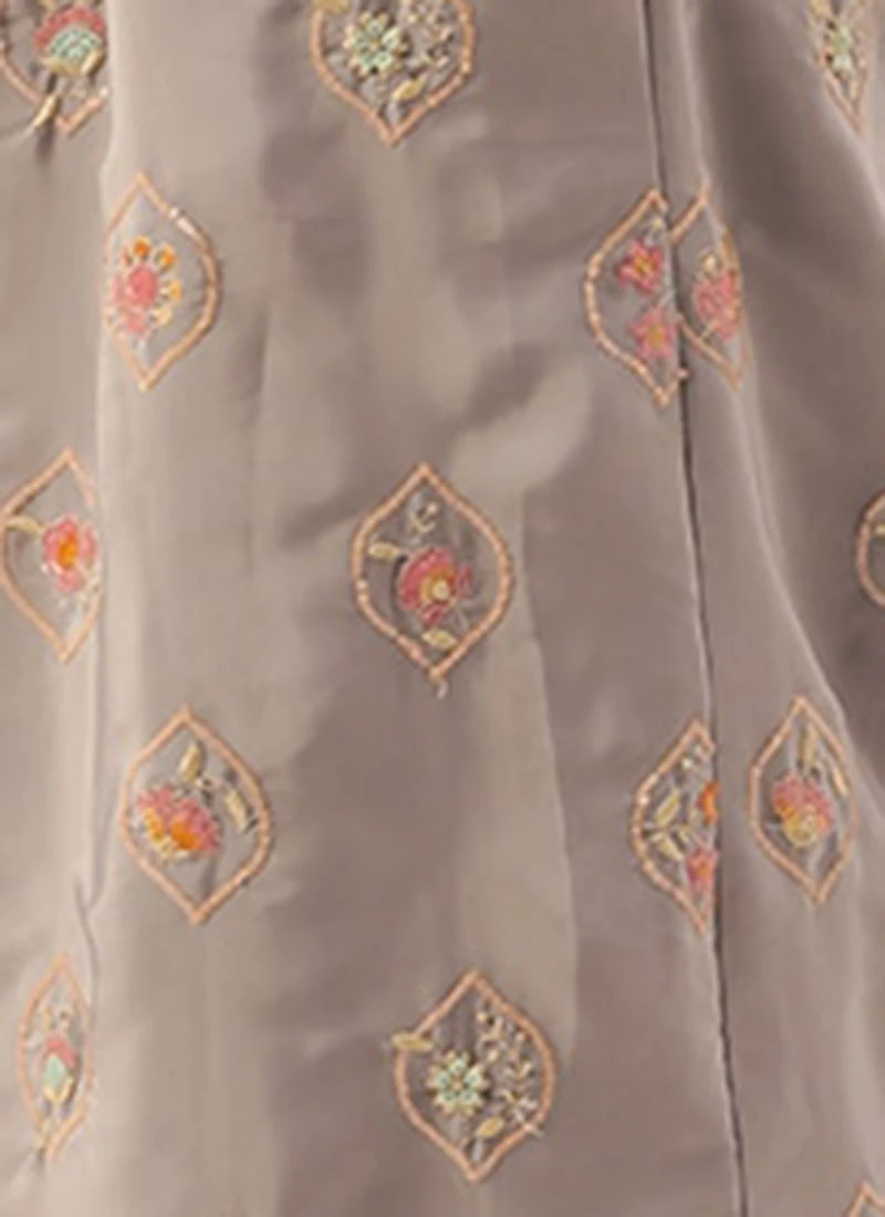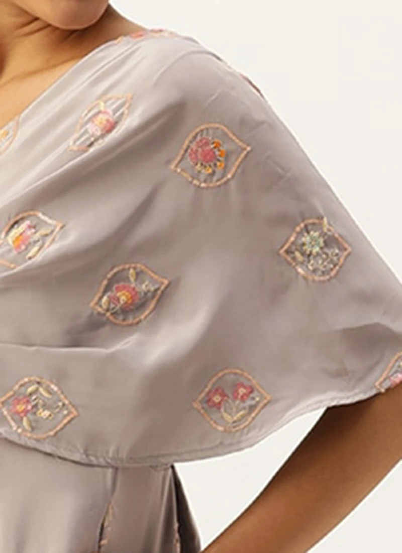 Grey Embroidered French Crepe Jumpsuit Festive Wear