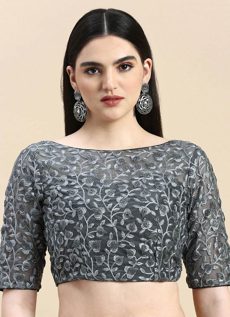 Grey Embroidered Net Blouse Party Wear