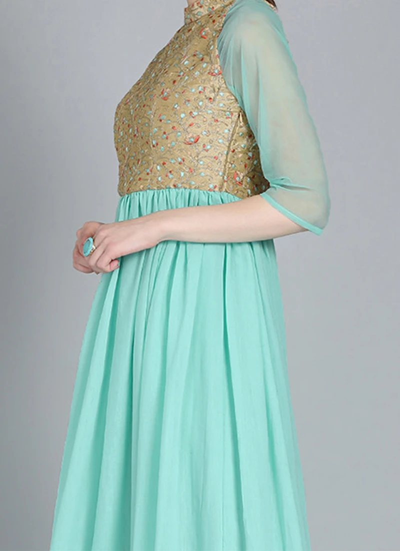 Halter Neck Style Embroidered Gown Party Wear