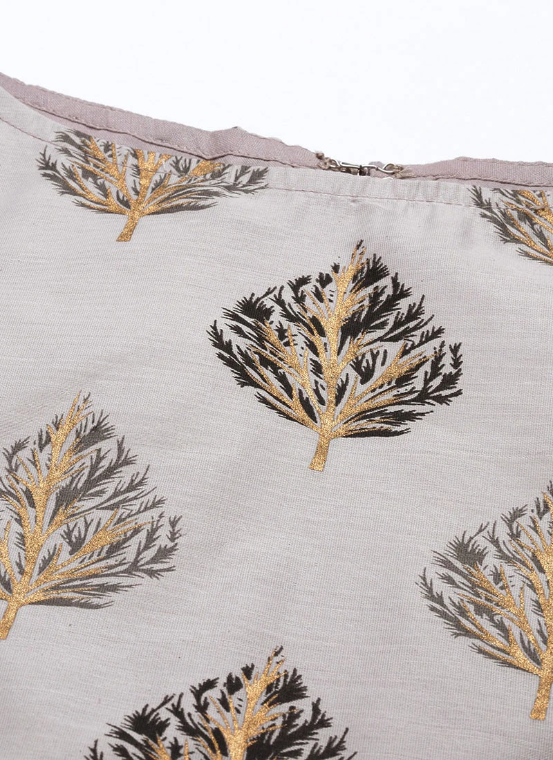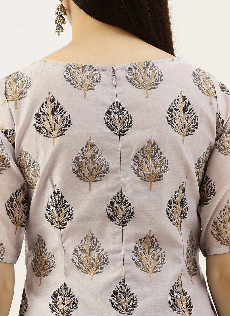 Lilac Hint Silk N Teal Blue Taffeta Kurta Set Festive Wear
