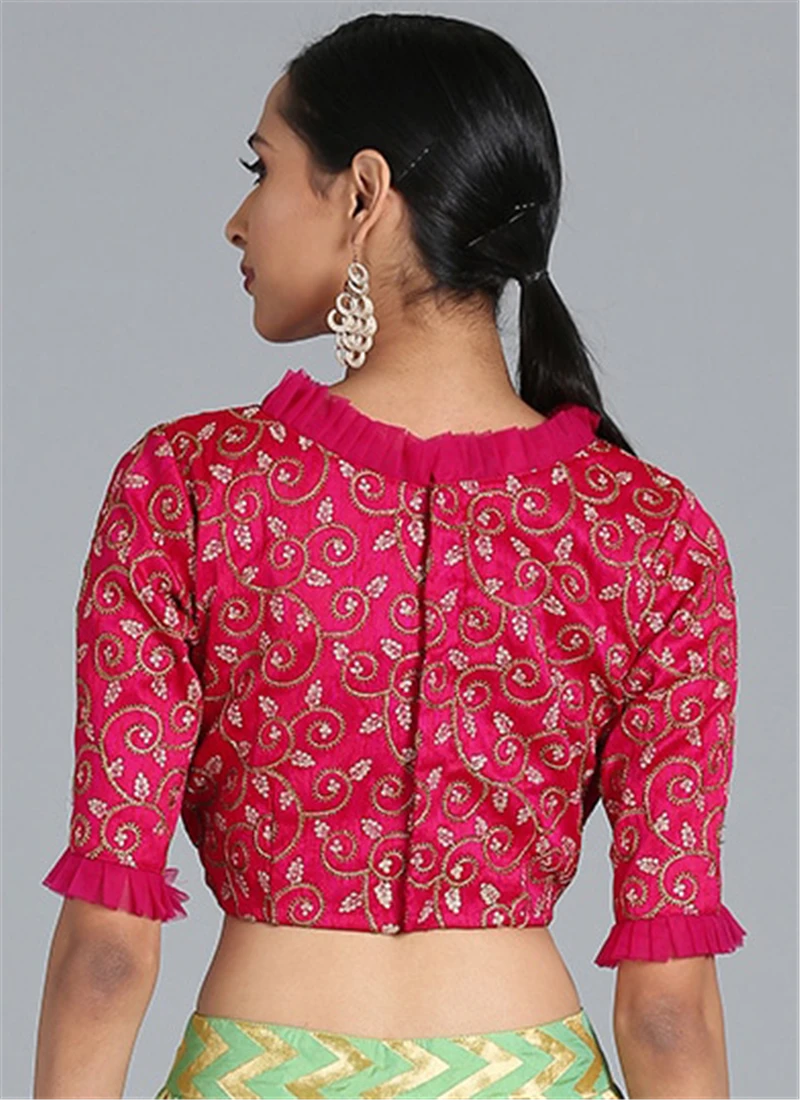 Magenta Embroidered Art Silk Blouse Festive Wear