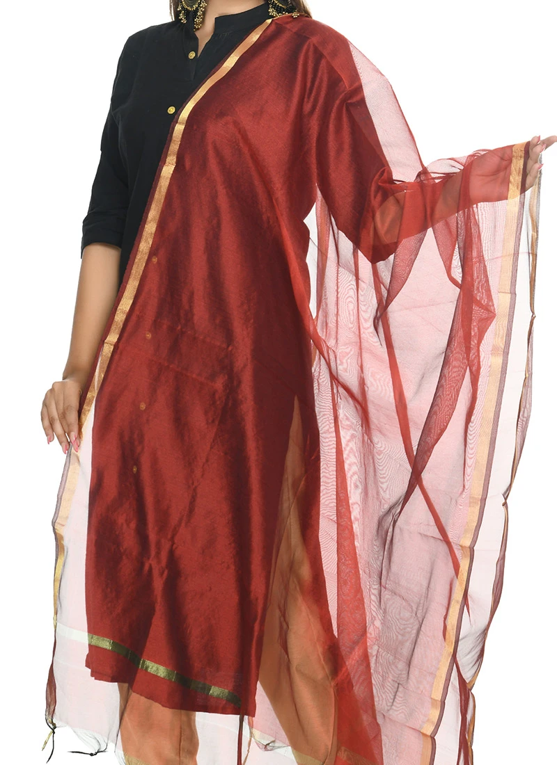 Maroon Chanderi Cotton Dupatta Festive Wear
