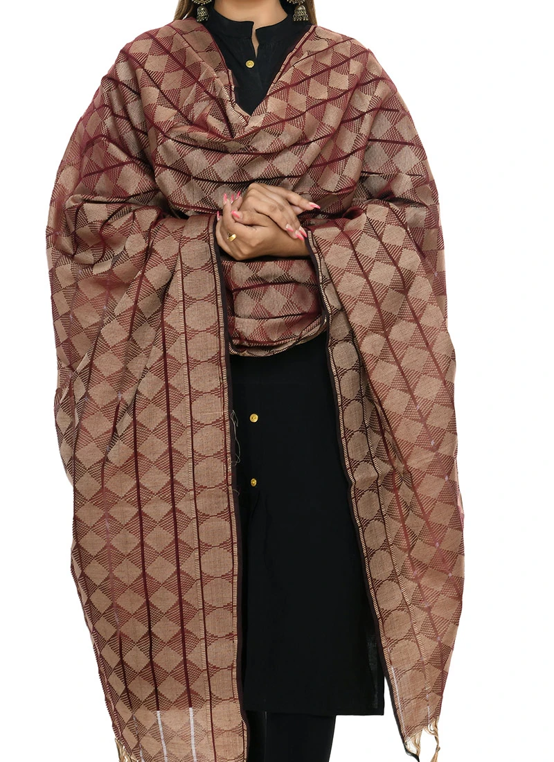 Checked Black Handloom Cotton Weaving Work Dupatta Work Wear