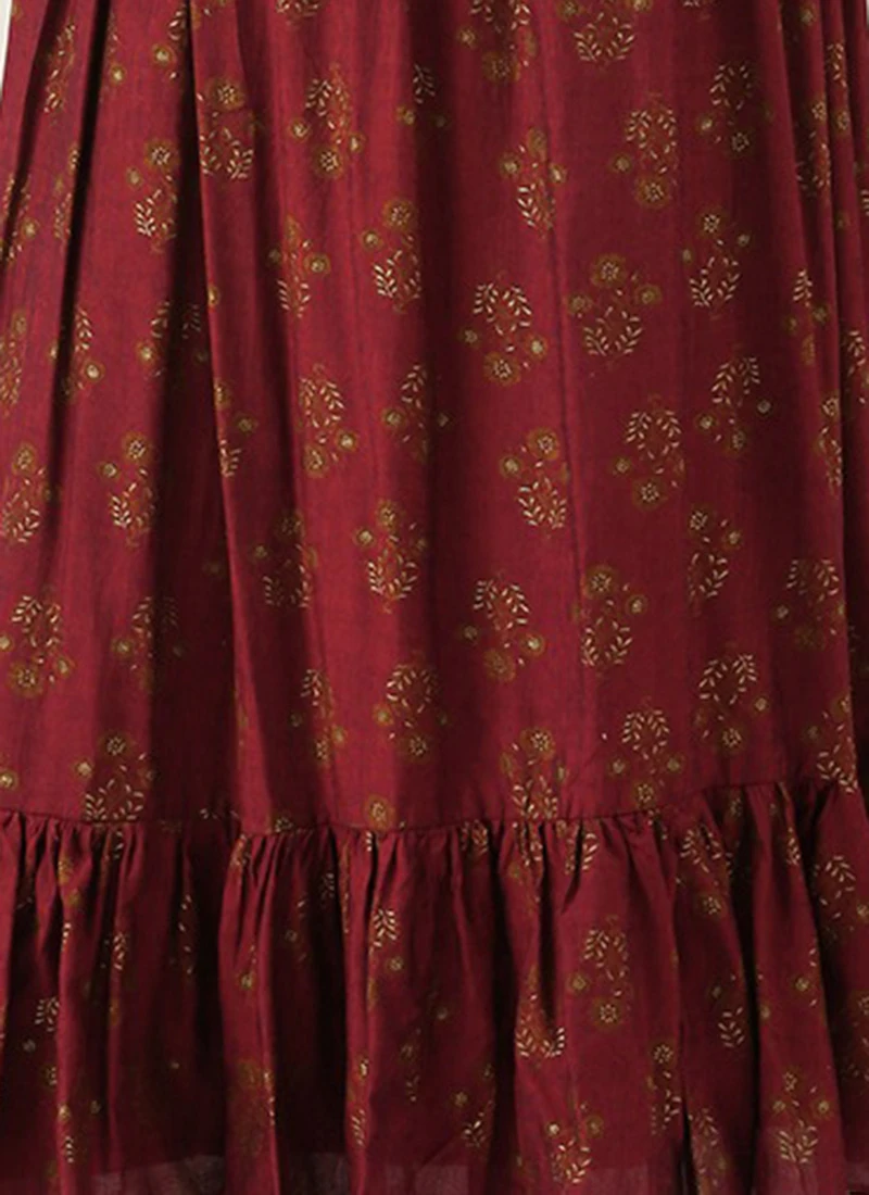 Maroon Rayon Printed Strap Neckline Dress After Six Wear