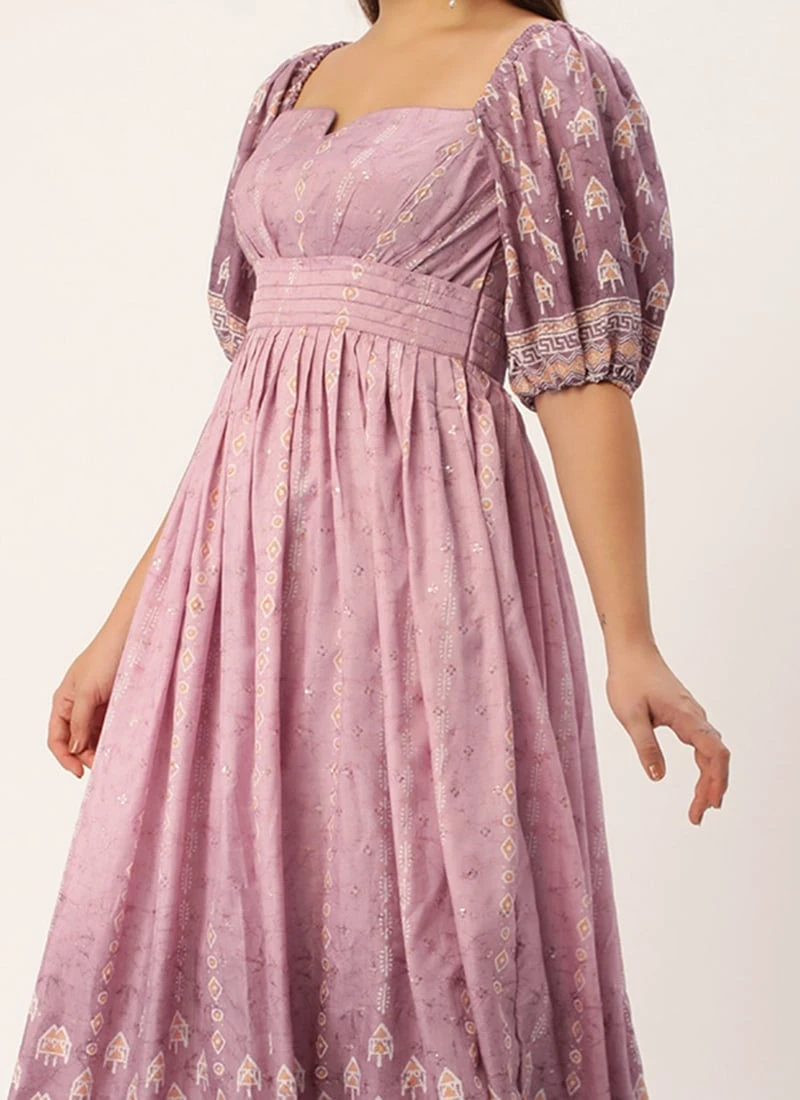 Mauve Art Silk Digital Printed Dress Party Wear