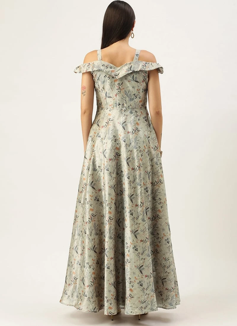 Multicolored Printed Off Shoulder Style Dress Festive Wear
