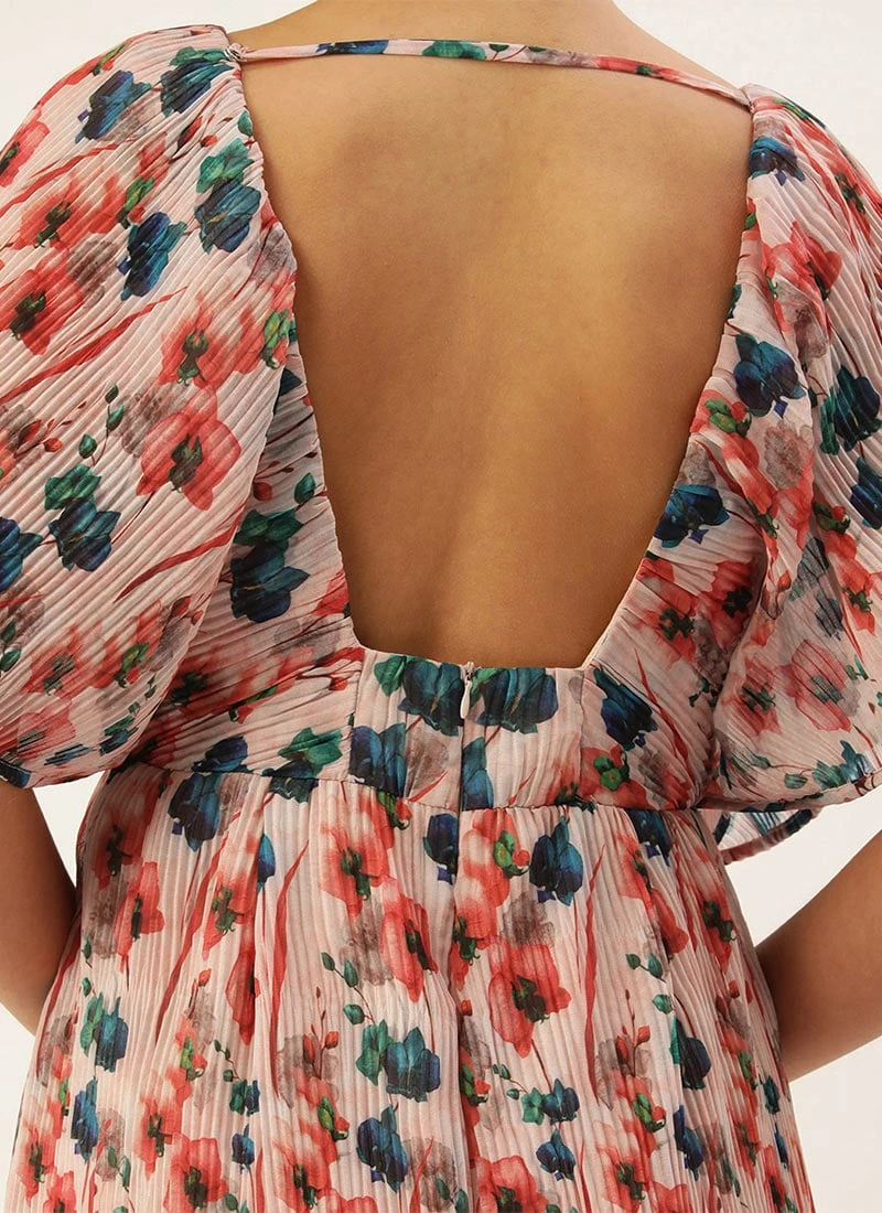 Multicoloured Pleated Georgette Jumpsuit After Six Wear