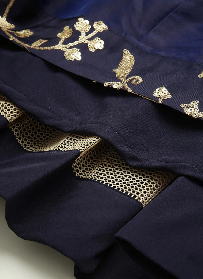 Navy Blue Embroidered Kali Style Gown Festive Wear