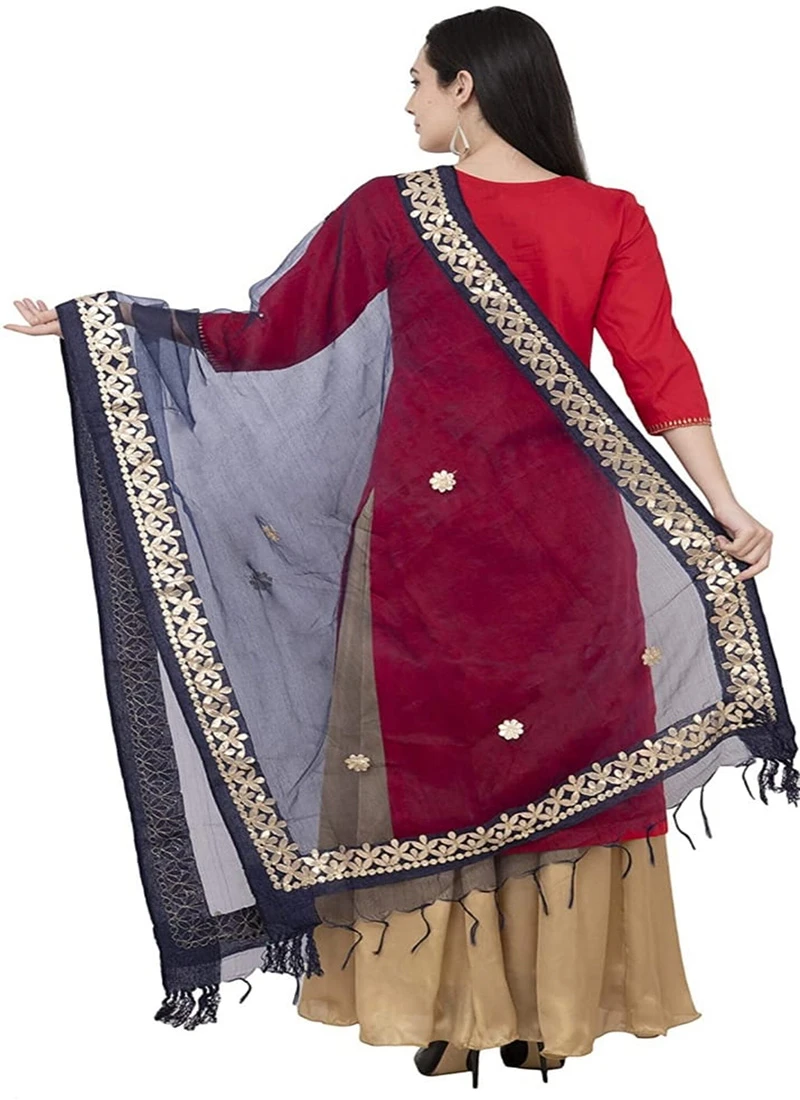 Navy Blue Organza Cotton Gota Patti Work Dupatta Festive Wear