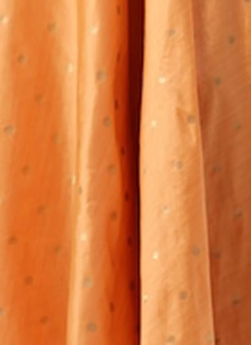 Peach Art Silk Jacquard Pleated Yoke Gown Wedding Wear
