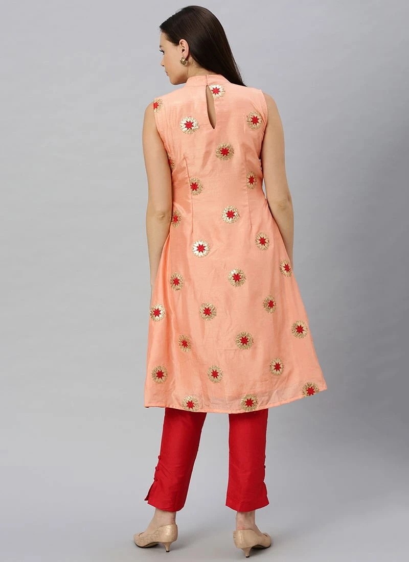 Peach Embroidered Fabric Kurta Straight Pant Set Festive Wear