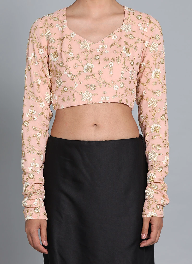 Peach Viscous Embroidered Blouse Festive Wear