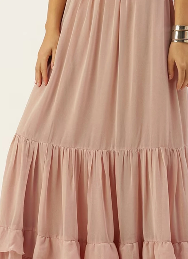 Pink Georgette Tiered Skirt Party Wear
