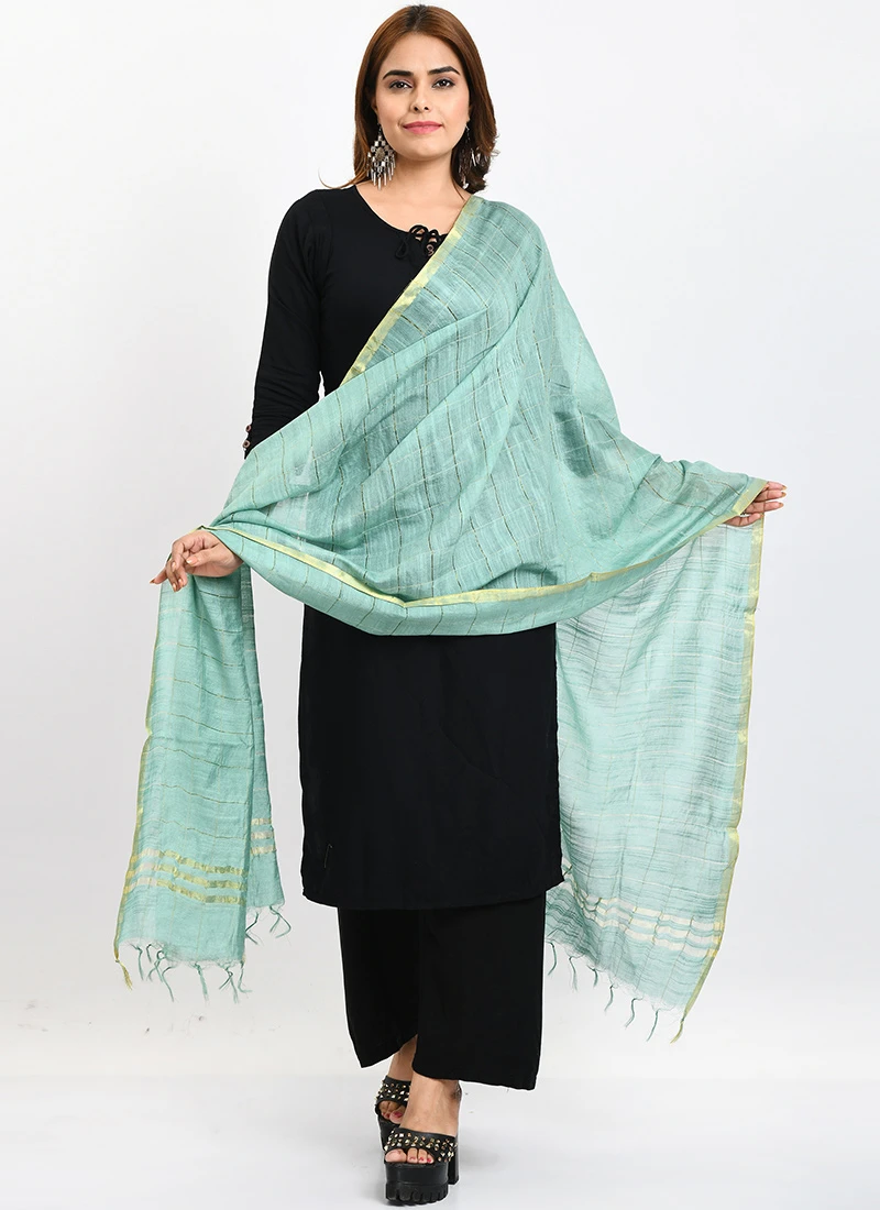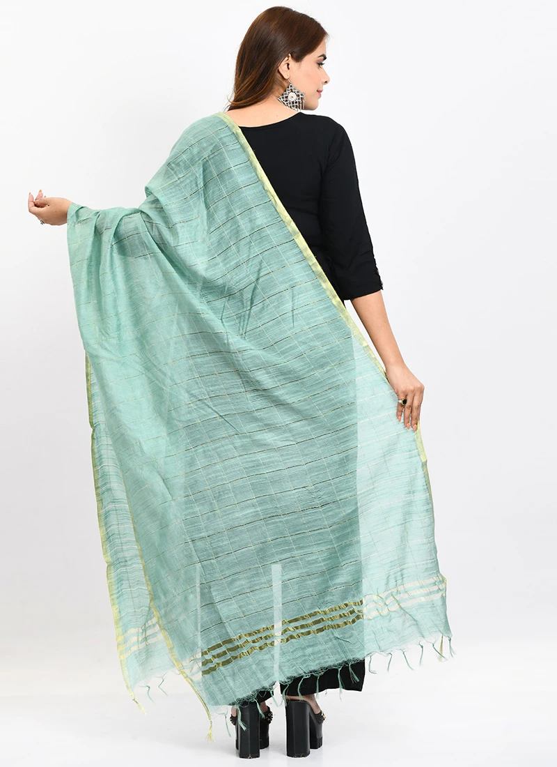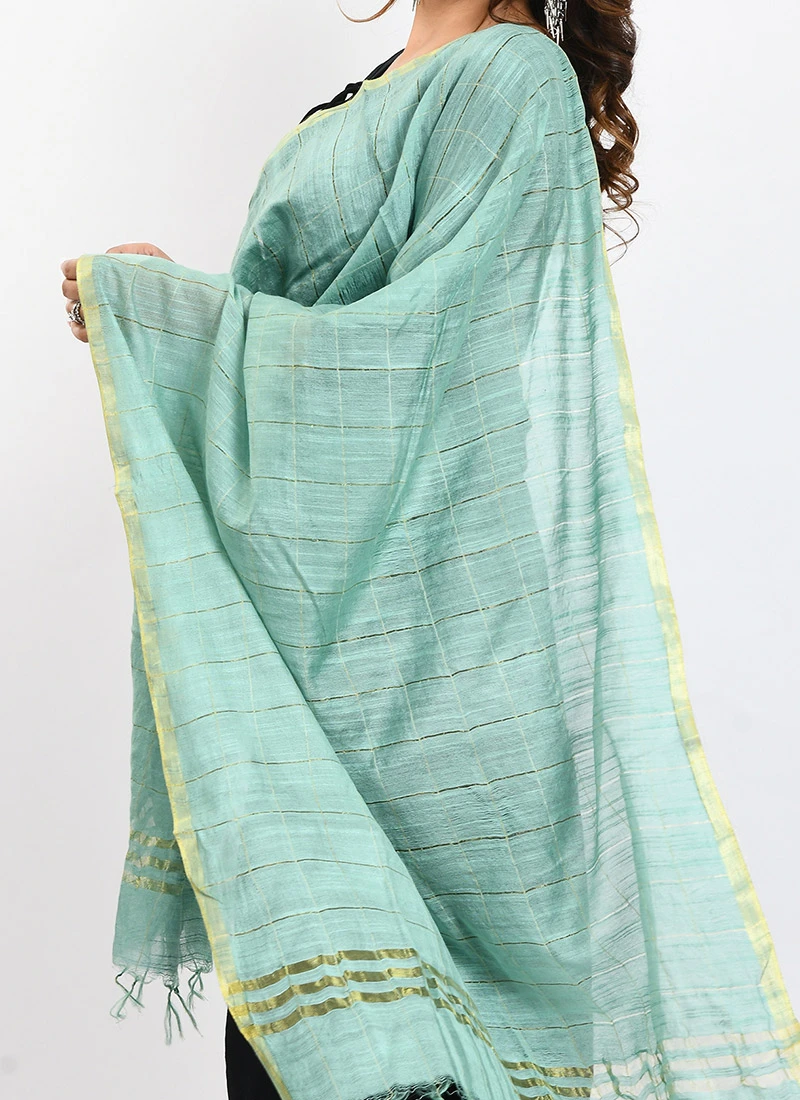 Checked Black Handloom Cotton Weaving Work Dupatta Work Wear