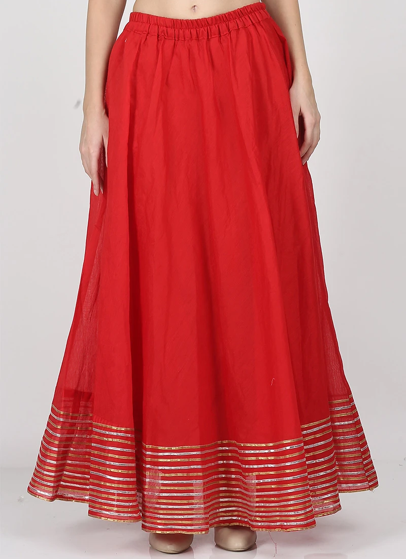 Women splendor is magnified tenfold with this red art silk skirt. Look ravishing clad in such a bottom which is enhanced.