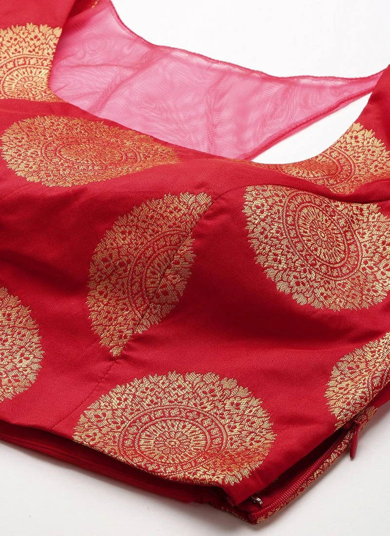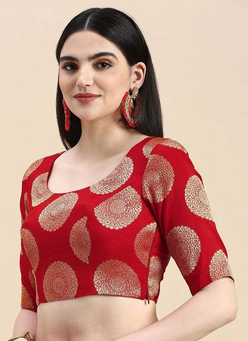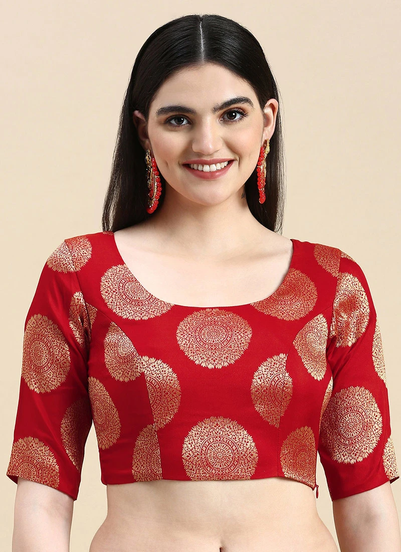 Red Taffeta Blouse Festive Wear