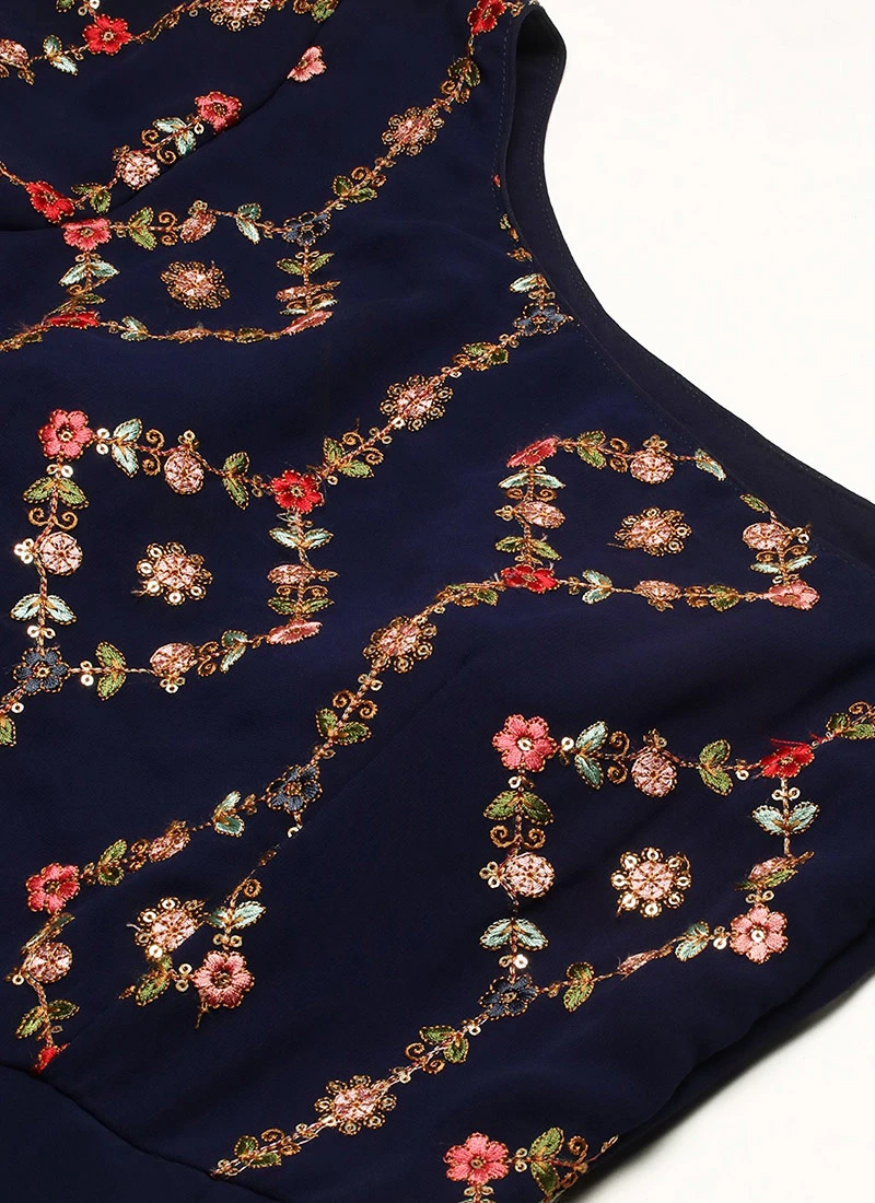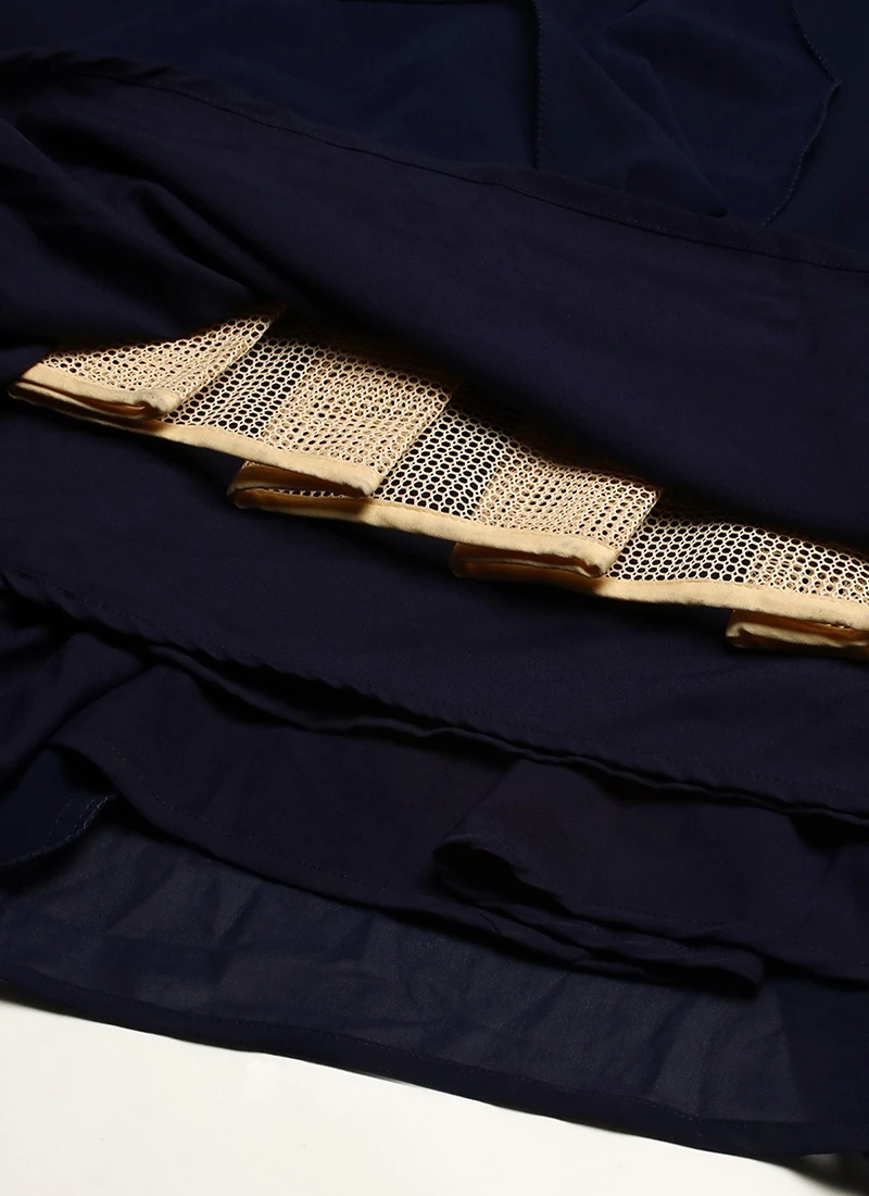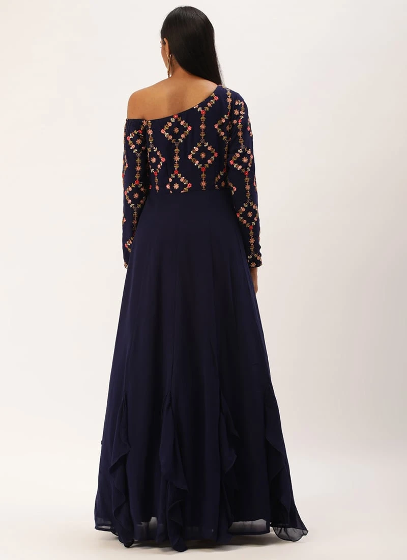 Royal Blue Embroidered One Shoulder Ruffle Gown Party Wear