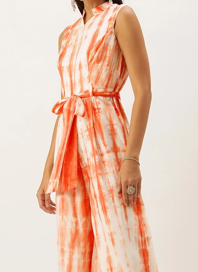 Rust Tie N Dye Cotton Collar Neck Jumpsuit After Six Wear Festive Wear