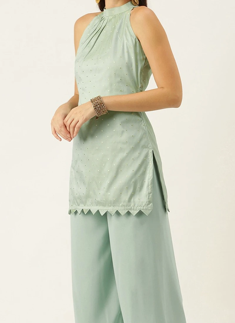 Sea Green Kurta With Wide Leg Pants Festive Wear