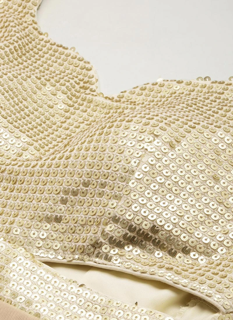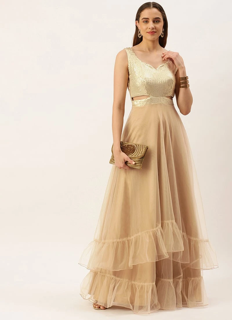 Silver Sequins Embroidered N Light Beige Net Gown Festive Wear