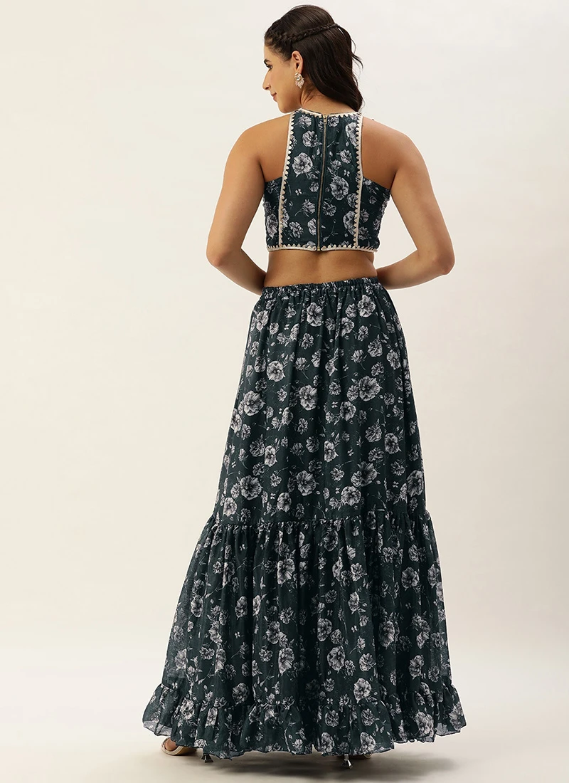 Skirt From Blue Chinon Digital Printed Co Ords Set After Six Wear