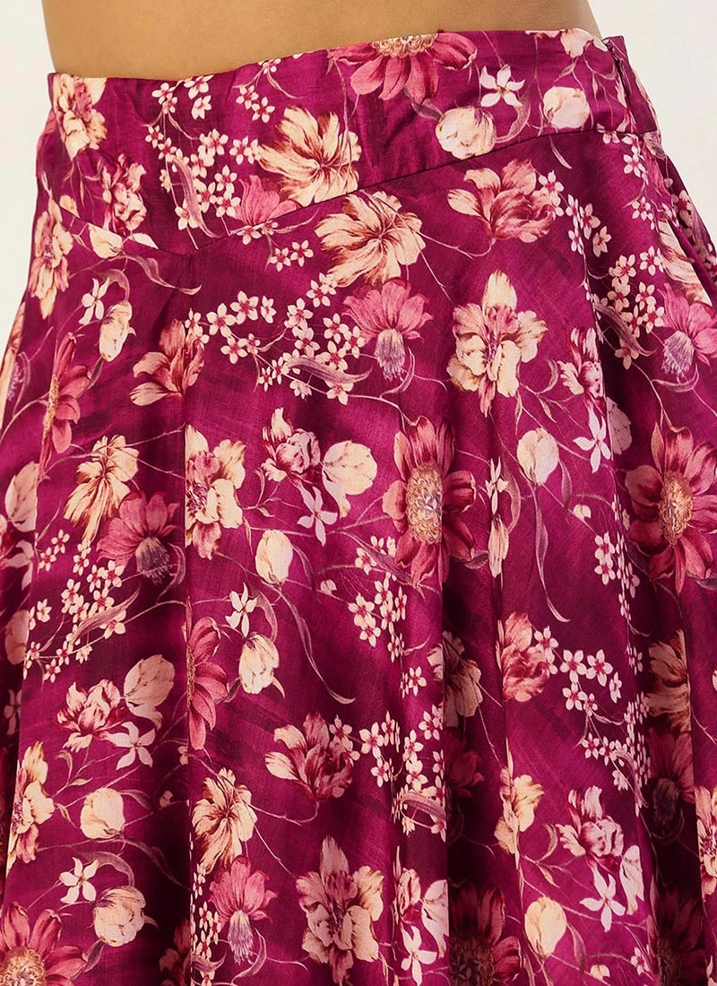 Skirt From Maroon Art Silk Printed Skirt Set After Six Wear