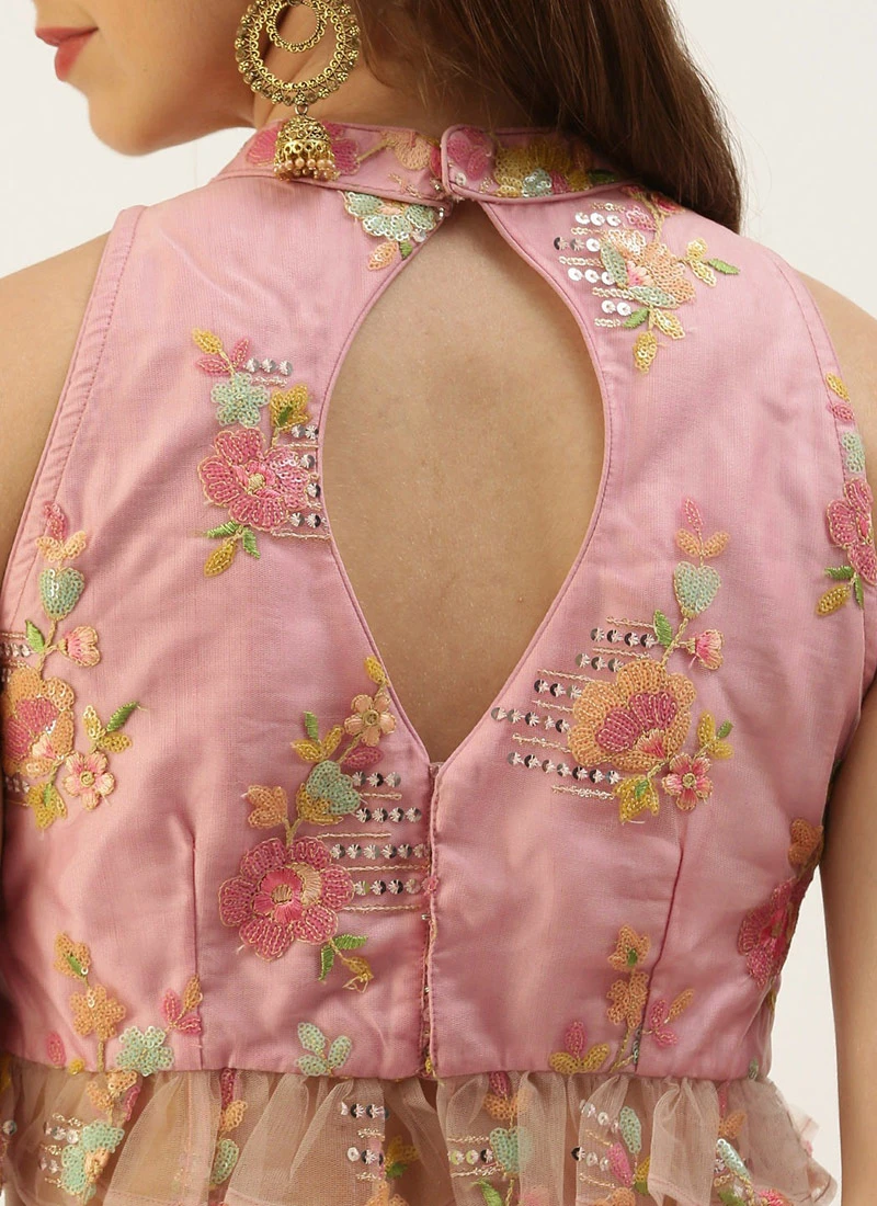 Skirt From Pink Net Thread Embroidered Skirt Set After Six Wear