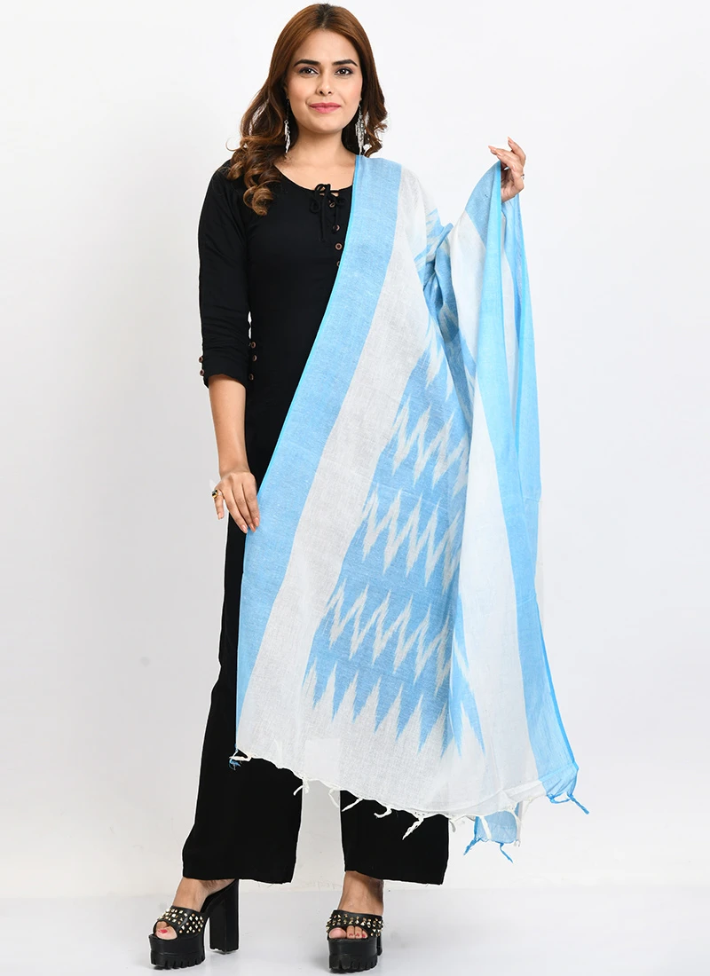 Checked Black Handloom Cotton Weaving Work Dupatta Work Wear