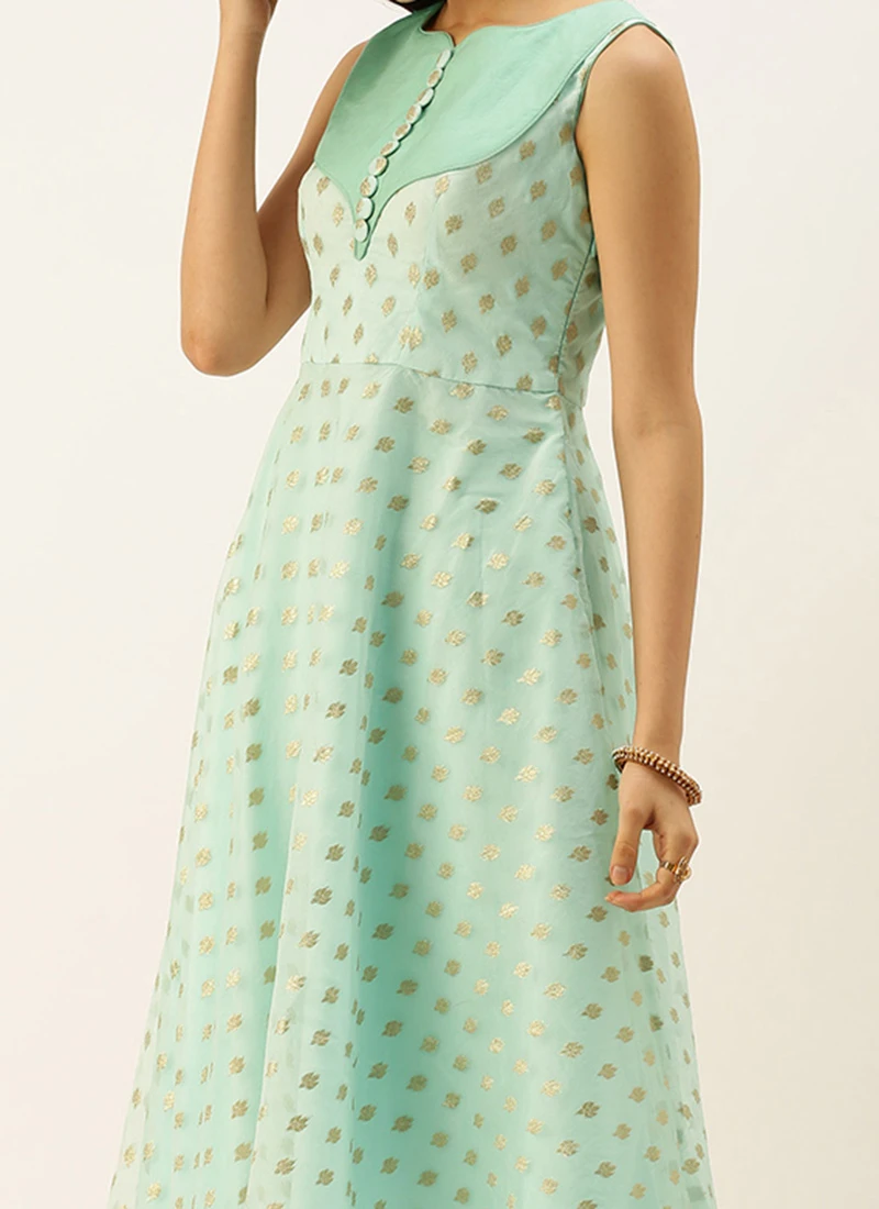 Sky Blue Organza Jacquard Kurta Set Festive Wear