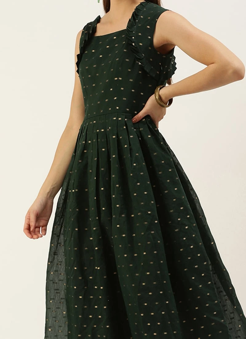 Teal Green Art Silk Cotton Jacquard Dress After Six Wear