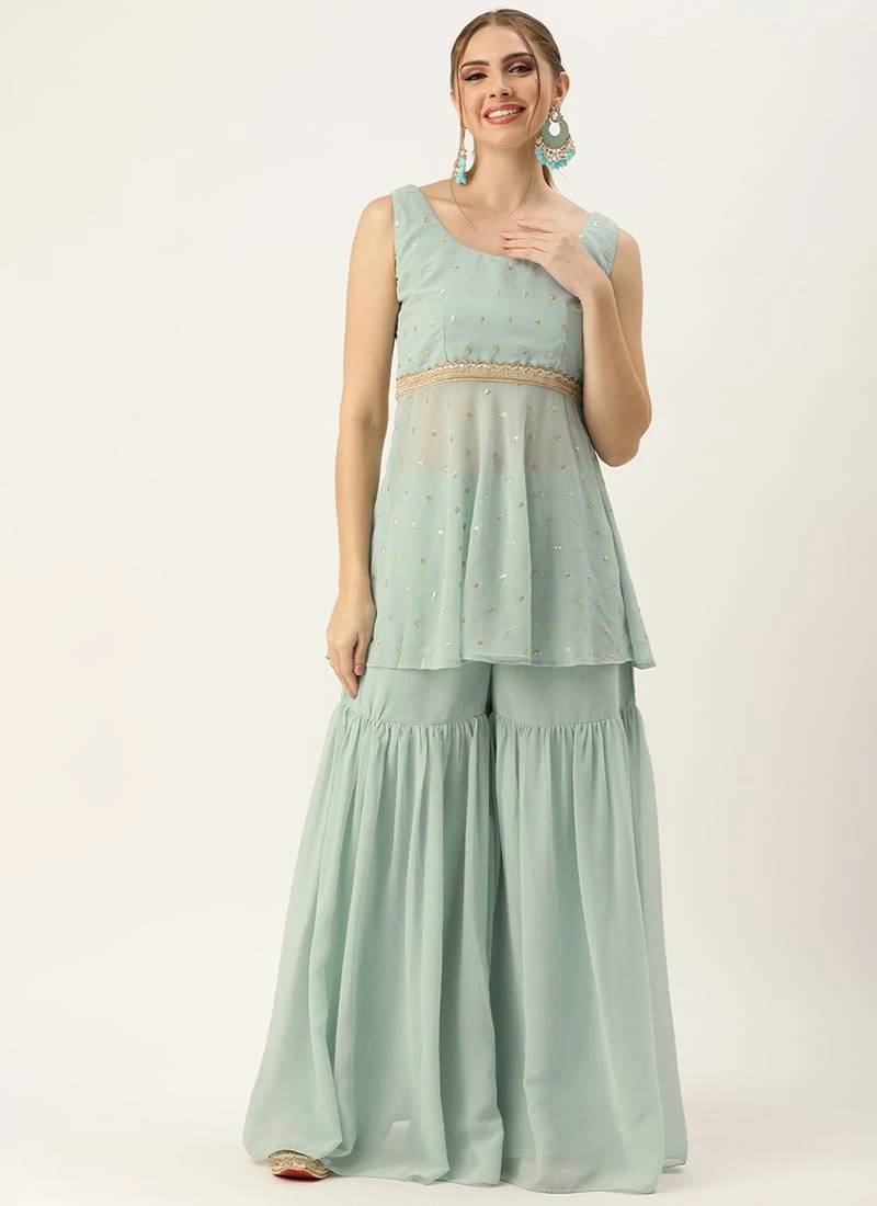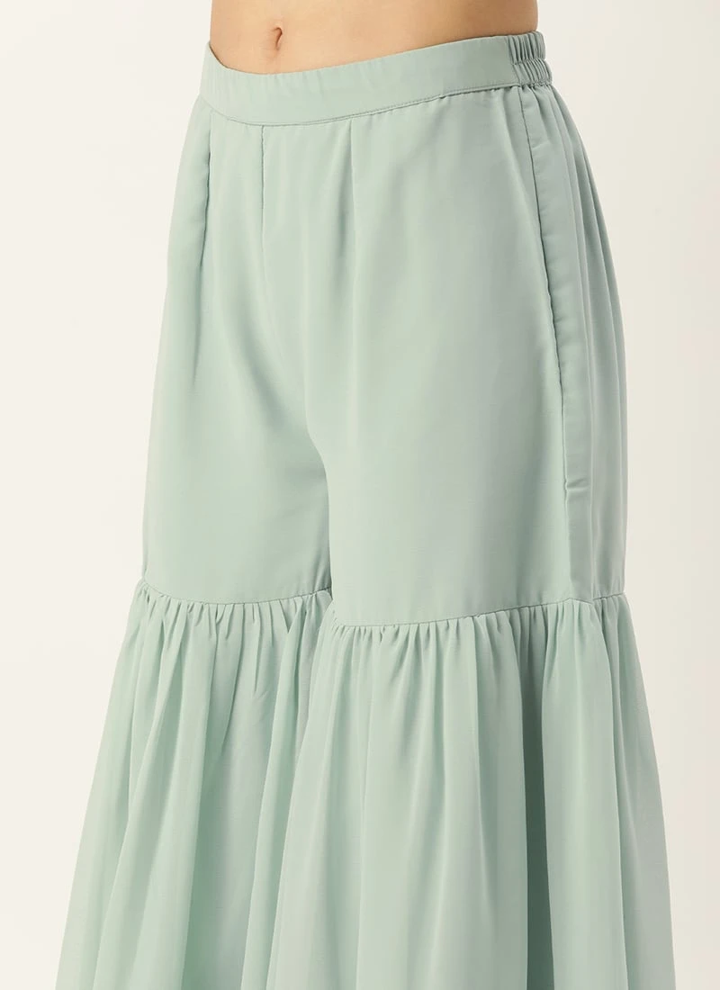 Top From Green Georgette Embroidered Gharara Set After Six Wear