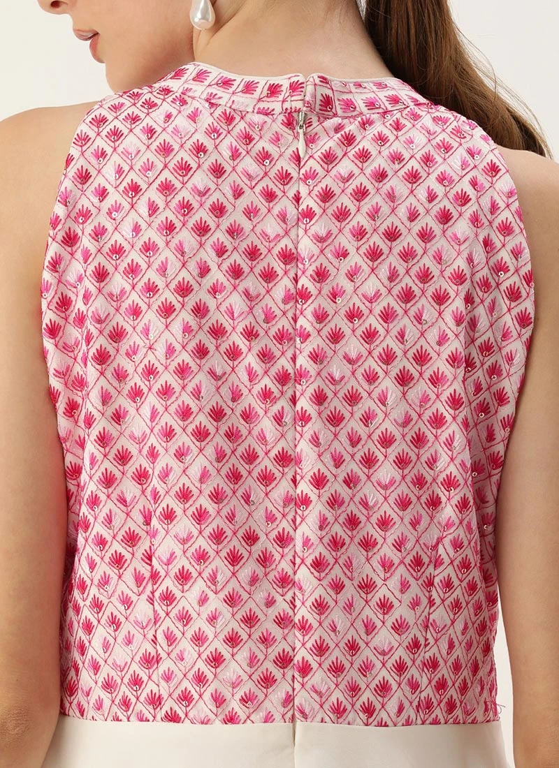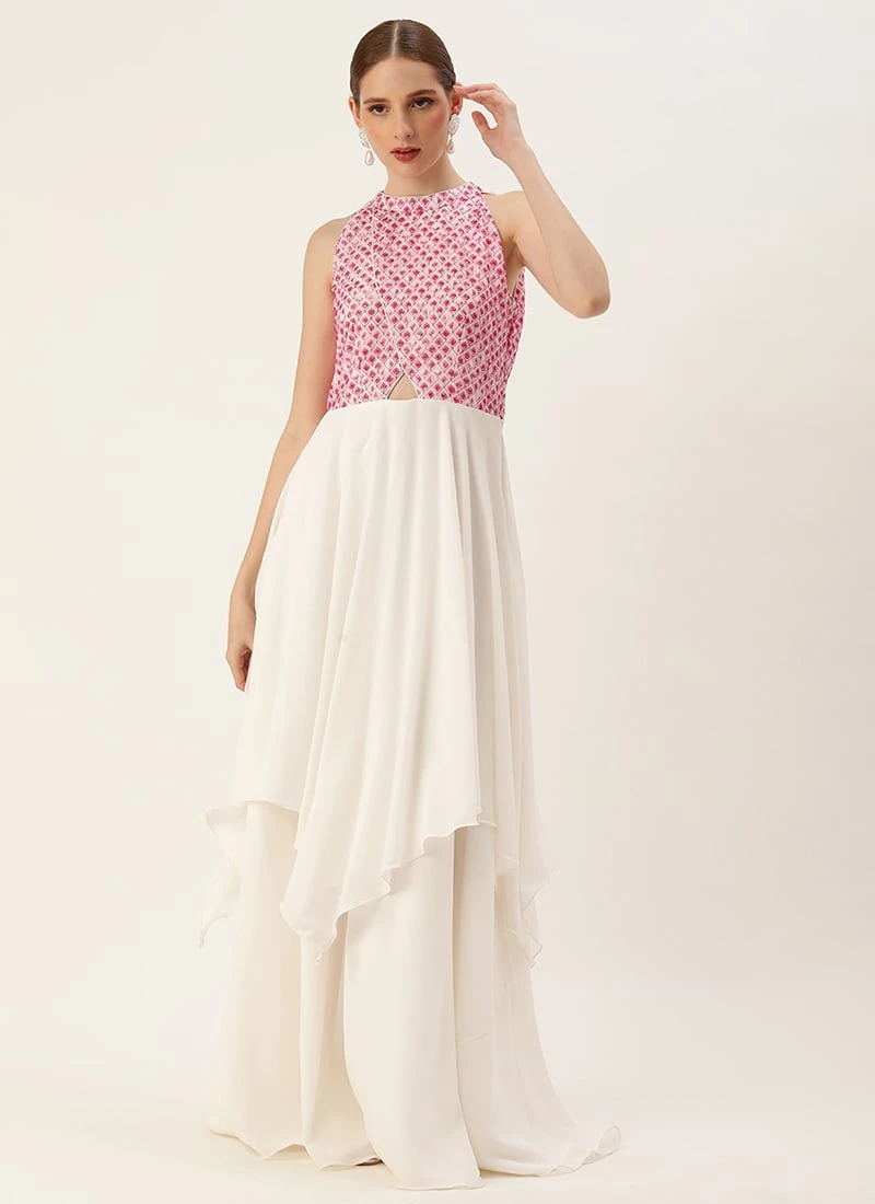 White Embroidered Halter Neck Gown Festive Wear