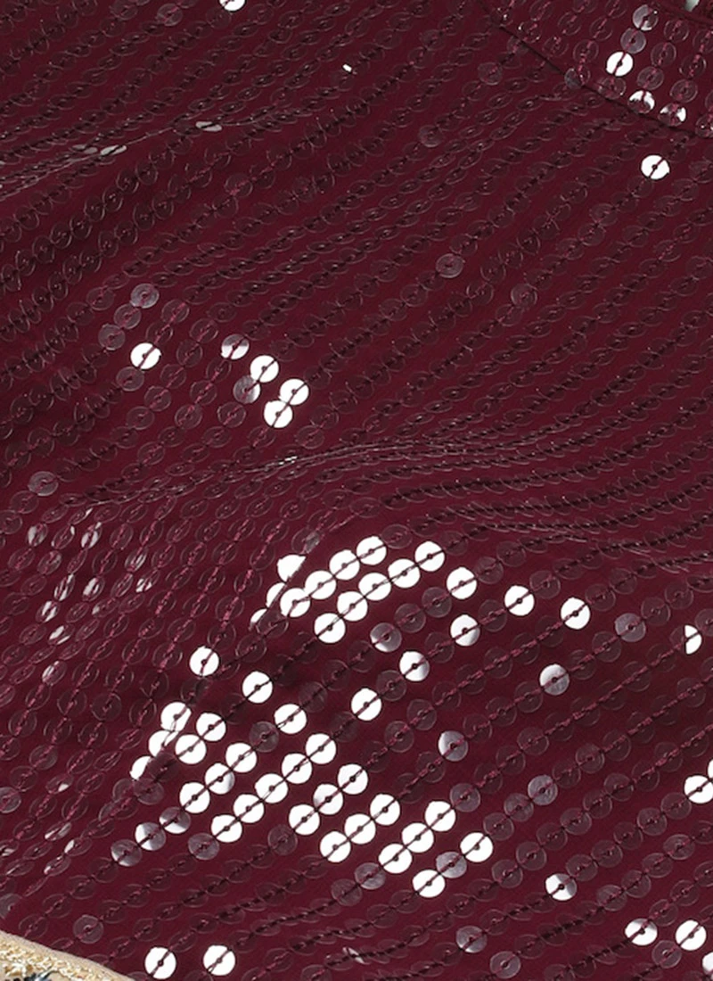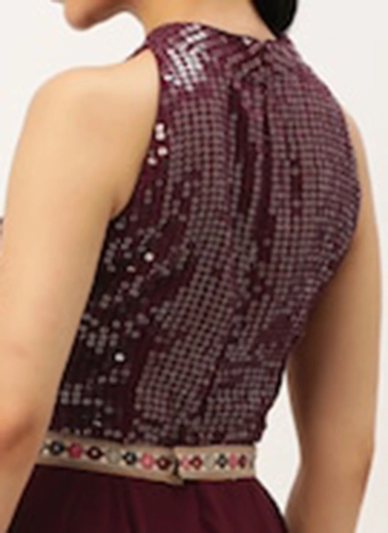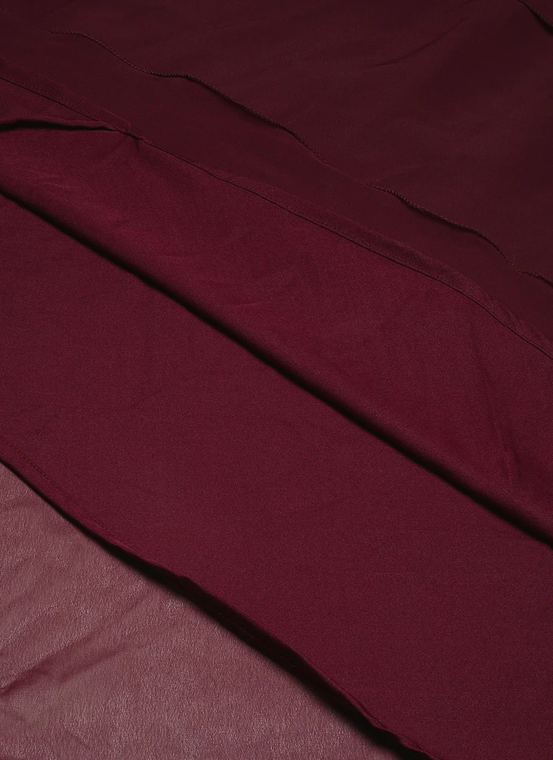 Wine Georgette Embroidered Handkerchief Gown Festive Wear