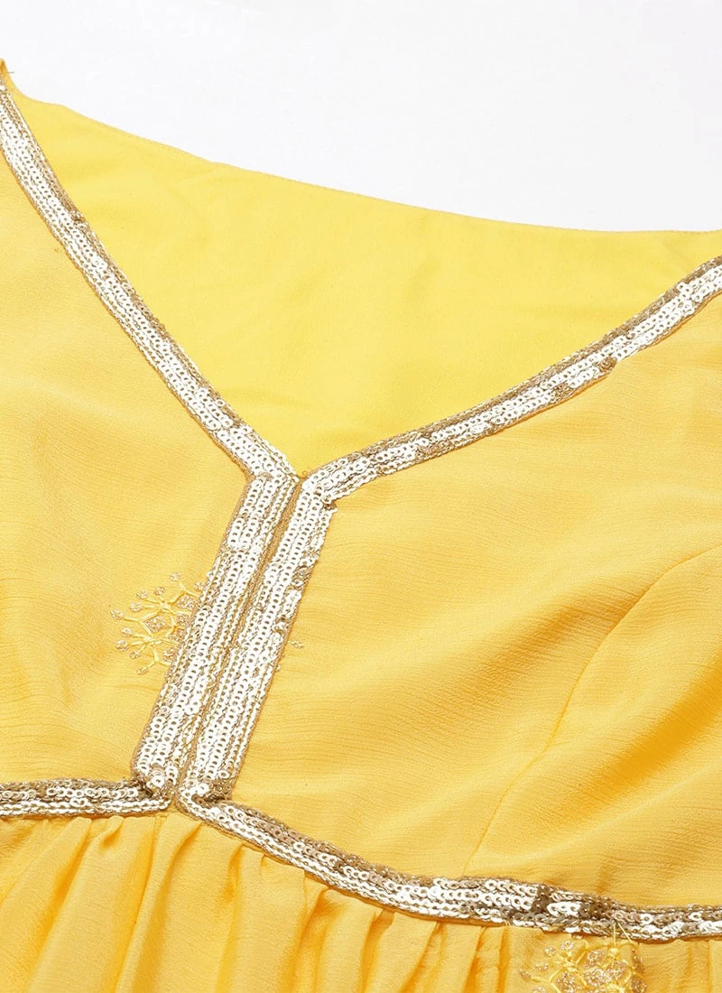 Yellow Chinnon Embroidered Kurta Set Festive Wear